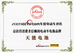![]() 2009年最值得消費者信賴的電動車電池品牌 |