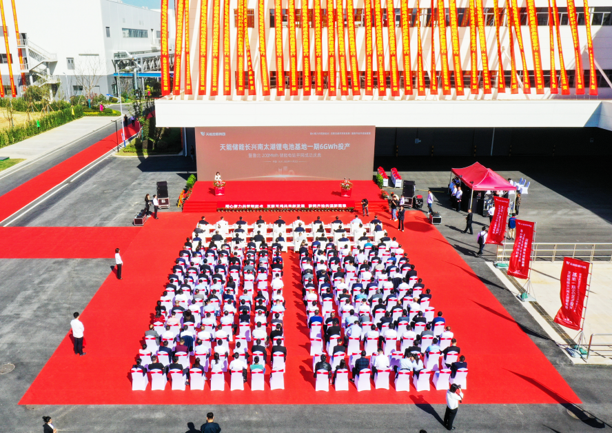 11月2日上午,天能储能长兴南太湖锂电池基地一期6GWh投产暨鲁北200MWh储能电站并网成功庆典活动举行。