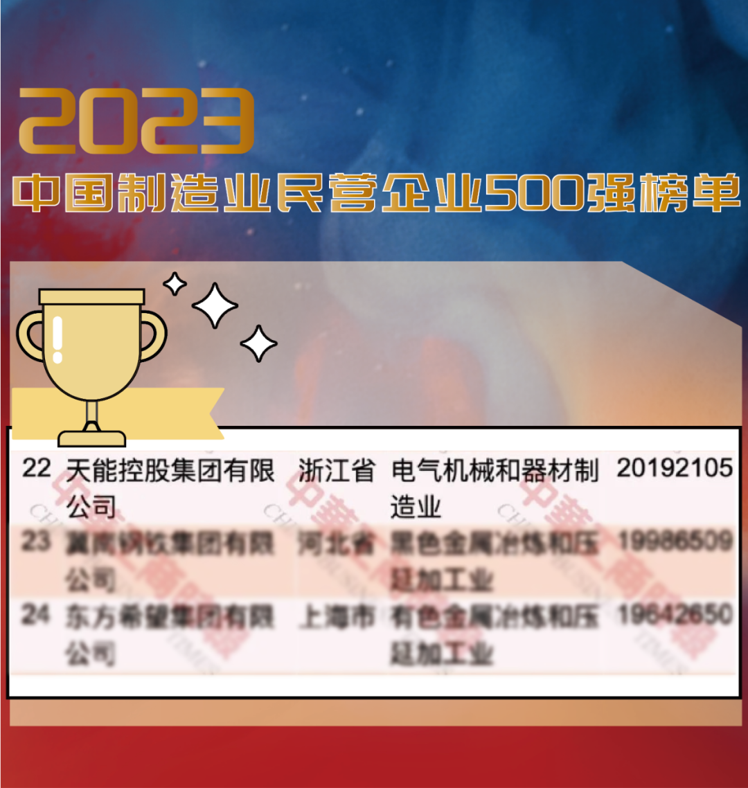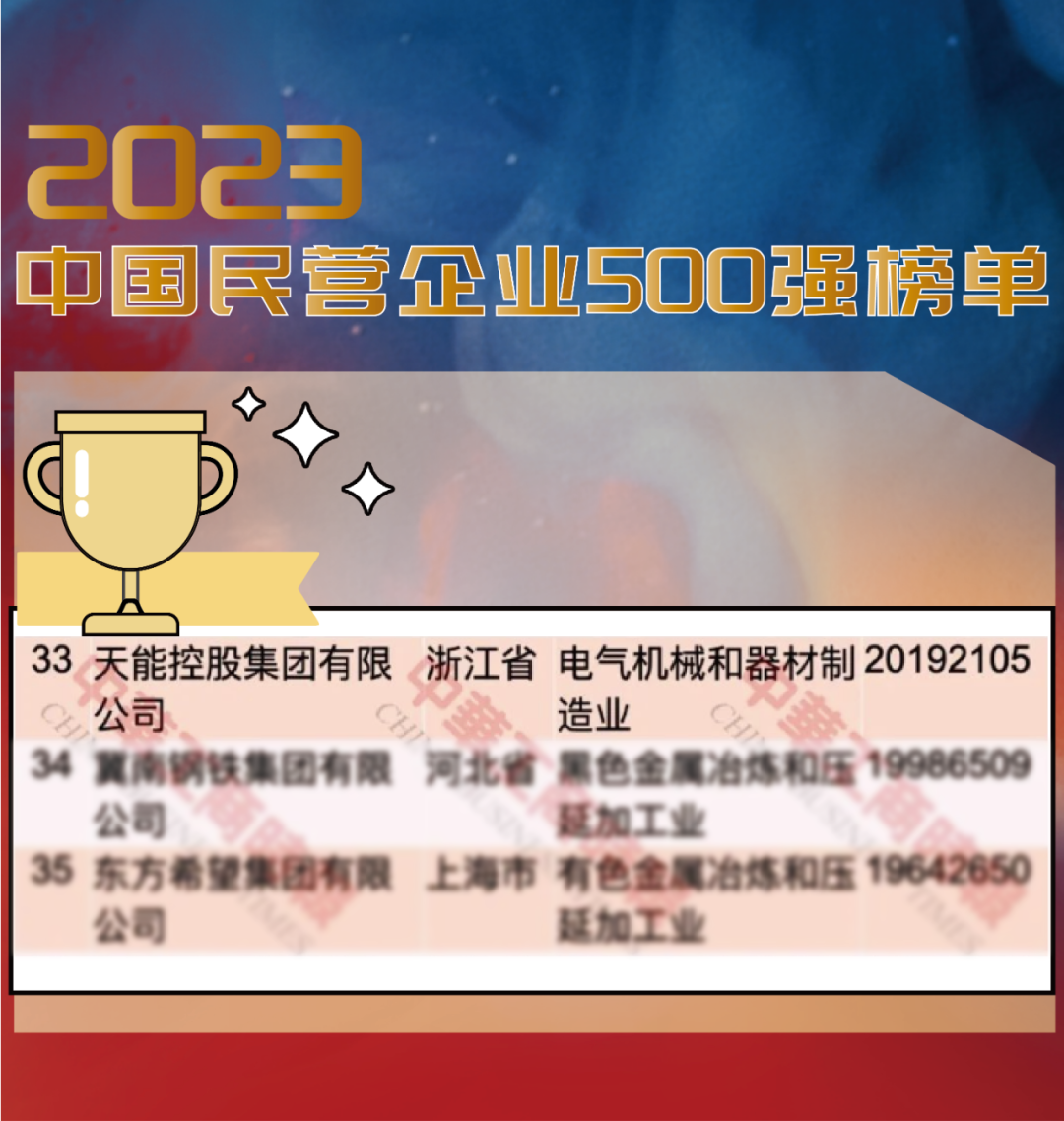 第33位!天能在中国民企500强榜单跃升7名