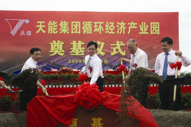 ▲ 2009年6月28日,总投资18亿元的天能集团循环经济产业园开工奠基